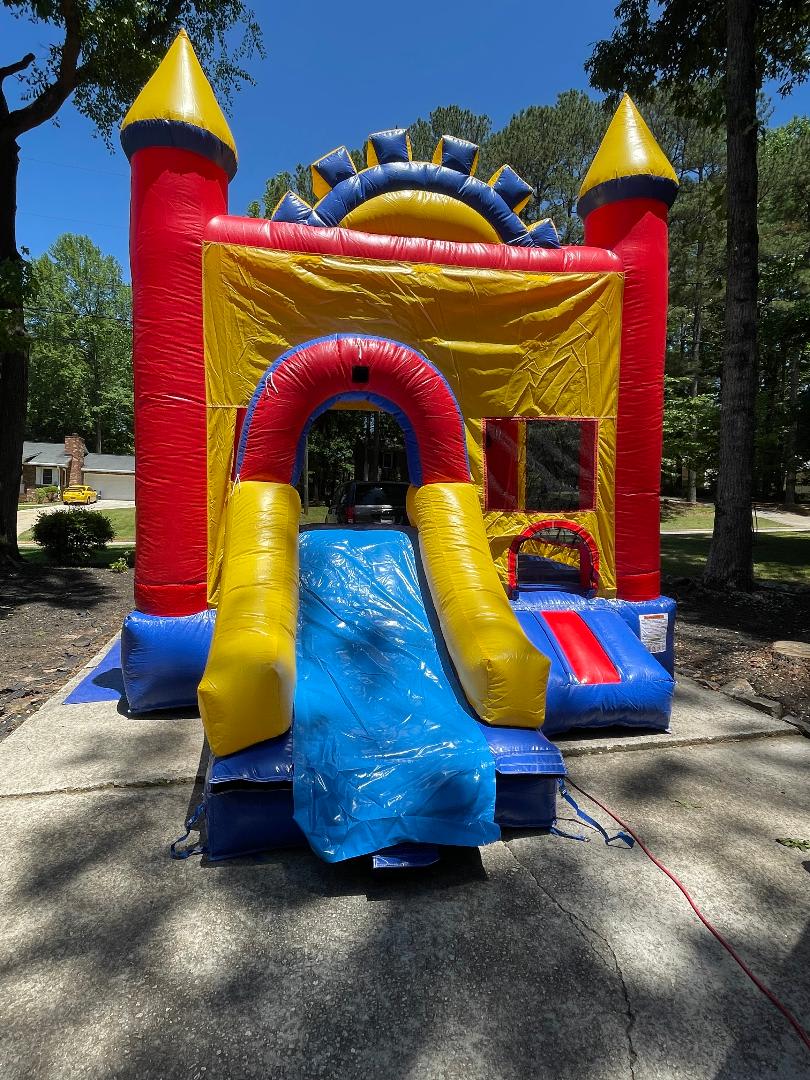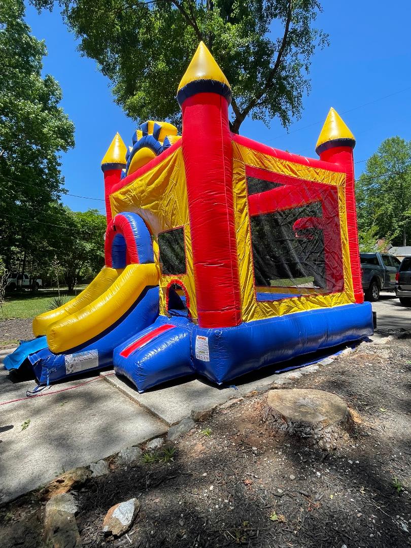 BOUNCY CASTLE hire in Stockbridge GA. Our multi-colored castle is a great main attraction or extra at your next event! Our bounce house can used wet or dry so the weather will not be an issue. We deliver clean and sanitized equipment, so safety is our main priority. We service Dekalb, Clayton, Gwinnett, Henry and other GA counties. Book this inflatable at cloud9gamesatl.com, call 404-940-2902 or contact us for additional information.